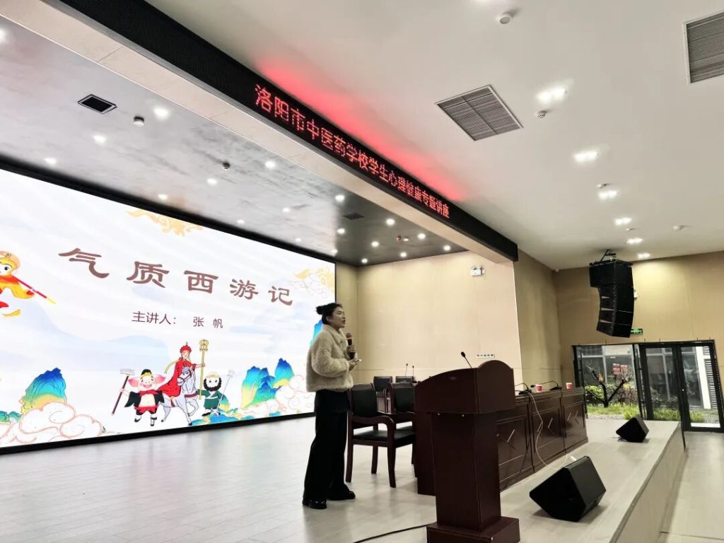 稍事休息后,第二場(chǎng)講座由張帆老師主講。作為碩士研究生學(xué)歷、嵩縣心理學(xué)科教研領(lǐng)軍人物,張老師以“氣質(zhì)‘西游記’,助力認(rèn)知自我,規(guī)劃好幸福人生”為主題,帶領(lǐng)同學(xué)們開啟了一場(chǎng)認(rèn)識(shí)自我的探索之旅。